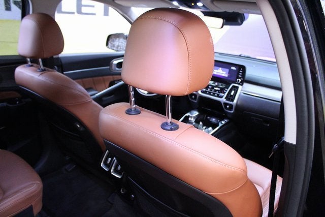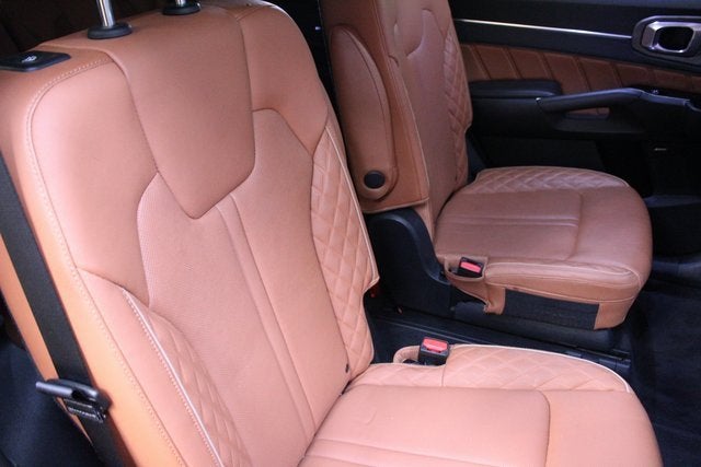 Ebony Black 2021 Kia Sorento SX Prestige X-Line AWD 8-Speed DCT 2.5L I4 DGI Turbocharged DOHC 16V LEV3-ULEV70 281hp Clean Carfax, One Owner, Active Cruise Control, Apple CarPlay & Android Auto, Automatic temperature control, Four wheel independent suspension, Front dual zone A/C, Heated & Ventilated Front Bucket Seats, Heated door mirrors, Heated steering wheel, Illuminated Hatch Sill Plate, Illuminated Scuff Plates, Mudguards, Navigation System, Perforated Genuine Leather Seat Trim, Power door mirrors, Power driver seat, Power Liftgate, Power moonroof, Power passenger seat, Radio: AM/FM Premium Bose Audio System w/Nav, Rear window defroster, Remote keyless entry, Roof rack, Security system, Smart Key w/ Push Button and Remote Start, Spoiler, Steering wheel mounted audio controls, Tow Hitch PnP (Turbo Only), Turn signal indicator mirrors, Wheels: 20 Grey Finish Alloy, X-Line SX Prestige Rust Color Package.